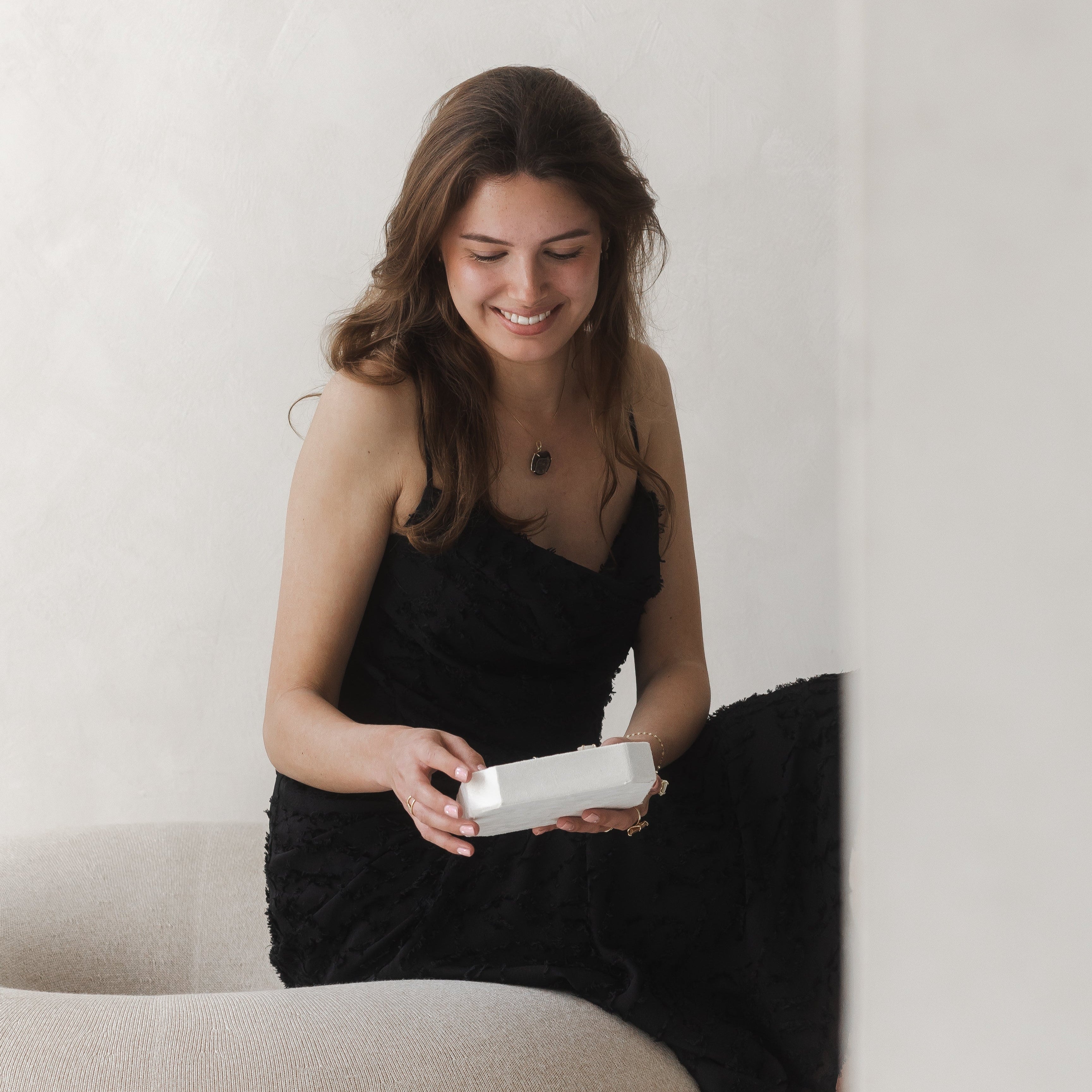 I carefully handcraft your unique piece using sustainable metals and your chosen elements. Please keep in mind that this takes around six weeks. The result: a one-of-a-kind jewel that carries your story forever.